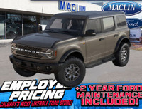Year End Clearout on now! Get your best deal on every New and Used Vehicle at Maclin Ford - Calgarys Most Likeable Ford Store!<br><br>This brand new OXFORD WHITE 2025 FORD BRONCO BADLANDS is powered by a 2.7L V6 ECOBOOST ENGINE THAT'S PAIRED WITH AN ELECTRONIC 10-SPD AUTO TRANSMISSION.<br><br>Key highlights of this FORD BRONCO include: EQUIPMENT GROUP 334A: MID PACKAGE, FORD CO-PILOT360, SASQUATCH PACKAGE, BLACK APPEARANCE PACKAGE,HARD TOP, BLACK-PAINTED, SOUND DEADENING HEADLINER, ENGINE BLOCK HEATER, FITS ACCESSORY PACKAGE, STORAGE BAGS - TOP AND DOOR, POWER OUTLET, 360-DEGREE CAMERA, BLIS W/CROSS TRAFFIC ALERT, FORDPASS CONNECT, FRONT STABILIZER BAR DISCONNECT, REAR PARKING SENSORS, REMOTE VEHICLE START, TERRAIN MGMT SYSTEM W/G.O.A.T. MODES, 360-DEGREE CAMERA, AND SO MUCH MORE!!!<br><br>Calgary's Most Likeable Ford Store! Conveniently located in the Calgary Auto Mall at the corner of Glenmore & Deerfoot Trail and we're open Monday to Saturday. Our knowledgeable Product Advisors are ready to answer your questions and help you find the right vehicle for you! Maclin Ford has been in the automotive retail business for over 100 years. We are an AMVIC licensed dealership.<br><br>Excluding GST, all fees and levies are included<br><br>Engine: V6 Cylinder Engine 2.7L<br>L/100Km City: 14.1<br>L/100Km Hwy: 14.1<br><br><br><h3>Safety Equipment</h3><ul><li>ABS And Driveline Traction Control</li><li>Side Impact Beams</li><li>Dual Stage Driver And Passenger Seat-Mounted Side Airbags</li><li>Collision Mitigation-Front</li><li>Dual Stage Driver And Passenger Front Airbags</li><li>Rear Child Safety Locks</li><li>Back-Up Camera</li><li>Tire Specific Low Tire Pressure Warning</li><li>Driver Monitoring-Alert</li><li>Safety Canopy System Curtain 1st And 2nd Row Airbags</li><li>Reverse Sensing System Rear Parking Sensors</li><li>Outboard Front Lap And Shoulder Safety Belts -inc: Rear Centre 3 Point and Pretensioners</li><li>AdvanceTrac w/Roll Stability Control Electronic Stability Control (ESC) And Roll Stability Control (RSC)</li><li>BLIS (Blind Spot Information System) Blind Spot</li><li>Automatic Emergency Braking (AEB)</li><li>Personal Safety System Airbag Occupancy Sensor</li><li>Lane-Keeping System Lane Departure Warning</li><li>Lane-Keeping System Lane Keeping Assist</li><li>Cross-Traffic Alert</li><li>Emergency Sos Capability</li><li>Restricted Driving Mode/Alerts</li></ul><h3>Interior Equipment</h3><ul><li>Driver Seat</li><li>Passenger Seat</li><li>Manual Tilt/Telescoping Steering Column</li><li>Front Cupholder</li><li>Proximity Key For Doors And Push Button Start</li><li>Cruise Control w/Steering Wheel Controls</li><li>HVAC -inc: Underseat Ducts</li><li>Driver Foot Rest</li><li>Day-Night Rearview Mirror</li><li>Fade-To-Off Interior Lighting</li><li>Cargo Area Concealed Storage</li><li>Cargo Space Lights</li><li>Delayed Accessory Power</li><li>Power Door Locks w/Autolock Feature</li><li>Driver Information Centre</li><li>Trip Computer</li><li>Outside Temp Gauge</li><li>Digital/Analog Appearance</li><li>Front Centre Armrest</li><li>Perimeter Alarm</li><li>Immobilizer</li><li>Air Filtration</li><li>Heated Leather Steering Wheel</li><li>Compass</li><li>Remote Keyless Entry w/Integrated Key Transmitter, Illuminated Entry, Illuminated Ignition Switch and Panic Button</li><li>Driver And Passenger Visor Vanity Mirrors w/Driver And Passenger Illumination, Driver And Passenger Auxiliary Mirror</li><li>2 Seatback Storage Pockets</li><li>3 12V DC Power Outlets</li><li>Voice Activated Dual Zone Front Automatic Air Conditioning</li><li>Locking Glove Box</li><li>Smart Device Remote Engine Start</li><li>Redundant Digital Speedometer</li><li>Manual Adjustable Front Head Restraints and Foldable Rear Head Restraints</li><li>Power 1st Row Windows w/Driver And Passenger 1-Touch Up/Down</li><li>Front Map Lights</li><li>Leather/Metal-Look Gear Shifter Material</li><li>Mobile Hotspot Internet Access</li><li>Smart Device Integration</li><li>Tracker System</li><li>Power Rear Windows and Removable 3rd Row Windows</li><li>Vinyl/Rubber Floor Trim</li><li>Dashboard Storage, Driver / Passenger And Rear Door Bins and 2nd Row Underseat Storage</li><li>Gauges -inc: Speedometer, Odometer, Voltmeter, Engine Coolant Temp, Tachometer, Inclinometer, Trip Odometer and Trip Computer</li><li>Interior Trim -inc: Metal-Look Door Panel Insert and Metal-Look Interior Accents</li><li>Full Floor Console w/Locking Storage, Mini Overhead Console and 3 12V DC Power Outlets</li><li>60-40 Folding Split-Bench Front Facing Manual Reclining Fold Forward Seatback Vinyl Rear Seat</li><li>Full Vinyl/Rubber Floor Covering -inc: Carpet Front And Rear Floor Mats</li><li>Connected Navigation -inc: 1-year subscription, pinch-to-zoom capability, live traffic, predictive destinations and route guidance and One Box search, Navigation services require SYNC4 and Bronco Trail app, complimentary connect service and the FordPass app (see FordPass terms for details), Customer receives a complimentary 1-year subscription of navigation services when an eligible vehicle is added to a member's FordPass account, Trial period begins on the new vehicle warranty start date, At the end of the complimentary period, navigation service will terminate, Connected service and features depend on compatible Bell network availability, Evolving technology/cellular networks/vehicle capability may limit functionality and prevent operation of connected features, FordPass app, compatible w/select smartphone platforms, is available via a download, Message and data rates may apply</li><li>Marine Grade Vinyl Heated Bucket Seats -inc: 6-way manual driver and passenger including fore/aft, up/down and recline and front driver/passenger seat back MOLLE strap system</li><li>Connected Navigation -inc: 1-year subscription, pinch-to-zoom capability, live traffic, predictive destinations and route guidance and One Box search, Navigation services require SYNC4 and FordPass Connect, complimentary connect s