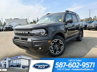 **WE WILL BEAT ANY FORD DEALER IN THE CITY**<br /><br />Where style meets adventure---the 2025 Bronco Sport Outer Banks delivers a refined take on rugged capability. Building on the Big Bend trim, it adds a bold grille with BRONCO lettering, a sleek two-tone black roof, and 18 Machined-Face Aluminum Ebony Black-Painted wheels for a standout look.<br /><br />Inside, a leather-trimmed interior and heated steering wheel bring elevated comfort to every drive. You'll also enjoy features like heated front seats, Intelligent Access, remote start, a 12.3 digital instrument cluster, and SYNC 4 with FordPass Connect?.<br /><br />Rear Parking Sensors, an 8-speed automatic transmission, and the Terrain Management System with 5 G.O.A.T. Modes? ensure it's ready for whatever lies ahead. With standard Ford Co-Pilot360 safety tech, the Outer Banks blends premium design with true Bronco capability.<br><br>We are an AMVIC Licensed dealership.<br><br>Engine: 1.5L I-3 EcoBoost<br>L/100Km City: 9.3<br>L/100Km Hwy: 7.9<br><br><br><h3>Safety Equipment</h3><ul><li>ABS And Driveline Traction Control</li><li>Side Impact Beams</li><li>Dual Stage Driver And Passenger Seat-Mounted Side Airbags</li><li>Collision Mitigation-Front</li><li>Dual Stage Driver And Passenger Front Airbags</li><li>Airbag Occupancy Sensor</li><li>Rear Child Safety Locks</li><li>Outboard Front Lap And Shoulder Safety Belts -inc: Rear Centre 3 Point, Height Adjusters and Pretensioners</li><li>Back-Up Camera</li><li>Tire Specific Low Tire Pressure Warning</li><li>Driver Monitoring-Alert</li><li>Driver Knee Airbag</li><li>Rear Parking Sensors</li><li>Safety Canopy System Curtain 1st And 2nd Row Airbags</li><li>Evasion Assist</li><li>Lane Keeping Alert Lane Keeping Assist</li><li>Lane Keeping Alert Lane Departure Warning</li><li>AdvanceTrac w/Roll Stability Control Electronic Stability Control (ESC) And Roll Stability Control (RSC)</li><li>BLIS (Blind Spot Information System) Blind Spot</li><li>Pre-Collision Assist with Automatic Emergency Braking (AEB)</li><li>Lane Centering</li><li>Rear Cross-Traffic Braking</li><li>Emergency Sos Capability</li></ul><h3>Interior Equipment</h3><ul><li>Passenger Seat</li><li>Manual Tilt/Telescoping Steering Column</li><li>Front Cupholder</li><li>Rear Cupholder</li><li>Proximity Key For Doors And Push Button Start</li><li>Cruise Control w/Steering Wheel Controls</li><li>Glove Box</li><li>Driver Foot Rest</li><li>Full Cloth Headliner</li><li>Front And Rear Map Lights</li><li>Fade-To-Off Interior Lighting</li><li>Carpet Floor Trim</li><li>Cargo Area Concealed Storage</li><li>Cargo Space Lights</li><li>Delayed Accessory Power</li><li>Power Door Locks w/Autolock Feature</li><li>Driver Information Centre</li><li>Trip Computer</li><li>Outside Temp Gauge</li><li>Digital/Analog Appearance</li><li>Manual Adjustable Front Head Restraints and Manual Adjustable Rear Head Restraints</li><li>Perimeter Alarm</li><li>Air Filtration</li><li>Power Rear Windows and Fixed 3rd Row Windows</li><li>Compass</li><li>Remote Keyless Entry w/Integrated Key Transmitter, Illuminated Entry, Illuminated Ignition Switch and Panic Button</li><li>HVAC -inc: Underseat Ducts and Console Ducts</li><li>Driver And Passenger Visor Vanity Mirrors w/Driver And Passenger Illumination, Driver And Passenger Auxiliary Mirror</li><li>Day-Night Auto-Dimming Rearview Mirror</li><li>Cargo Features -inc: Tire Mobility Kit</li><li>Instrument Panel Bin, Driver / Passenger And Rear Door Bins</li><li>Seats w/Leatherette Back Material</li><li>Front Centre Armrest and Rear Centre Armrest</li><li>2 12V DC Power Outlets</li><li>Garage Door Transmitter</li><li>Voice Activated Dual Zone Front Automatic Air Conditioning</li><li>Smart Device Remote Engine Start</li><li>Redundant Digital Speedometer</li><li>Power 1st Row Windows w/Driver And Passenger 1-Touch Up/Down</li><li>6-Way Driver Seat</li><li>Smart Device Integration</li><li>Full Floor Console w/Covered Storage, Mini Overhead Console w/Storage and 2 12V DC Power Outlets</li><li>Securilock Anti-Theft Ignition (pats) Immobilizer</li><li>Heated Leatherette Steering Wheel</li><li>Memory Settings -inc: Driver Seat and Door Mirrors</li><li>Gauges -inc: Speedometer, Odometer, Engine Coolant Temp, Tachometer, Inclinometer, Trip Odometer and Trip Computer</li><li>Full Carpet Floor Covering -inc: Carpet Front Floor Mats</li><li>FordPass Connect Tracker System</li><li>Interior Trim -inc: Coloured Instrument Panel Insert, Coloured Door Panel Insert, Metal-Look Console Insert and Metal-Look Interior Accents</li><li>60-40 Folding Bench Front Facing Manual Reclining Fold Forward Seatback Cloth/Leatherette Rear Seat w/Manual Fore/Aft</li><li>Front Driver/Passenger Seat Back Map Pockets</li><li>Premium Trimmed Htd Front Bucket Seats w/Plat Blue -inc: sport contour buckets, 8-way power driver's seat (fore/aft, up/down, recline, lumbar), 6-way power passenger seat (fore/aft, up/down, recline) and memory driver's seat</li><li>Adaptive Cruise Control with Stop-and-Go</li><li>FOB Controls -inc: Keyfob Cargo Access and Keyfob Remote Start</li></ul><h3>Exterior Equipment</h3><ul><li>Black Side Windows Trim</li><li>Body-Coloured Door Handles</li><li>Deep Tinted Glass</li><li>Fully Galvanized Steel Panels</li><li>Black Grille</li><li>Liftgate Rear Cargo Access</li><li>Tailgate/Rear Door Lock Included w/Power Door Locks</li><li>LED Brakelights</li><li>Headlights-Automatic Highbeams</li><li>Tire Mobility Kit</li><li>Black Power Heated Side Mirrors w/Manual Folding</li><li>Front Fog Lamps</li><li>Black Bodyside Cladding and Black Wheel Well Trim</li><li>Black Rear Bumper</li><li>Speed Sensitive Rain Detecting Variable Intermittent Wipers</li><li>Autolamp Auto On/Off Projector Beam Led Low/High Beam Auto High-Beam Headlamps w/Delay-Off</li><li>Wheels: 18" Ebony Black-Painted Aluminum -inc: Machined-face</li><li>Black Front Bumper</li><li>Tires: 225/60R18 All-Season BSW</li><li>Flip-Up Rear Window w/Wiper and Defroster</li></ul><h3>Entertainment Equip