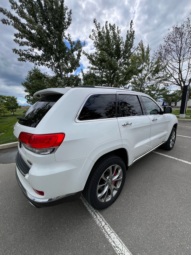 I am selling my 2014 Jeep Grand Cherokee Summit diesel, a luxurious and capable SUV with a powerful diesel engine, offering both impressive fuel efficiency and robust performance for all your adventures. This used Grand Cherokee Summit comes equipped with a full range of premium features and has been well-maintained with only one driver since new (over 90% of all km are highway km). Brand new tires just installed. It's hard to believe, but if the ad is up, it's available!