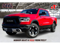 COME SEE WHY ''NOBODY BEATS A DEAL FROM PEEL!'' Your Source for ALL make and models used cars and trucks. Canada's #1 Stellantis Retailer for 9 years & counting!!<BR><BR>2022 Ram 1500 Rebel Crew Cab 4X4 | 3.0L EcoDiesel V6 Engine | Diamond Black Crystal Pearl | Night Edition | Luxury Leather-faced Front Bucket Seats | Uconnect 12 Touchscreen Display w/ Navigation | 19-speaker Harman/Kardon High Performance Audio System | Apple CarPlay & Android Auto | Heated First & Second-row Seats | Heated Steering Wheel | Remote Start | Wireless Smartphone Charging Pad | Remote Proximity Keyless Entry | Park-sense Front & Rear Parking Sensors | 124.9L Fuel Tank | Bed Utility Group | Trailer Brake Control | Class IV Hitch Receiver | Spray-in Bed Liner | Deployable Bed Step<BR><BR>One Owner Clean Carfax<BR><BR>Elevate every drive with this stunning 2022 Ram 1500 Rebel Crew Cab 4X4, boldly presented in sleek Diamond Black Crystal Pearl with the aggressive styling of the exclusive Night Edition. Powered by the highly sought-after and exceptionally fuel-efficient 3.0L EcoDiesel V6 engine, this Rebel blends incredible torque, impressive towing capabilities, and outstanding fuel economyperfect for both daily commutes and weekend escapes. The luxurious cabin sets a new benchmark, featuring premium heated leather seating in both front and rear rows, a heated steering wheel, and the state-of-the-art Uconnect infotainment system with an expansive 12-inch touchscreen, intuitive navigation, and seamless smartphone connectivity. Enjoy unmatched audio clarity with the premium 19-speaker Harman/Kardon high-performance sound system, complemented by thoughtful conveniences such as a wireless charging pad, remote ignition, and effortless keyless entry. Practical yet sophisticated, this Ram 1500 is thoughtfully equipped with advanced safety technologies including front and rear park sensors, and offers exceptional utility with an upgraded fuel tank, durable spray-in bed liner, convenient deployable bed step, and robust trailer towing enhancements. Impeccably maintained by its original owner and backed by a spotless Clean Carfax, this Ram Rebel uniquely blends cutting-edge technology, uncompromising luxury, and rugged capabilitymaking it the ultimate choice for drivers who demand power, refinement, and versatility.<BR>______________________________________________________<BR><BR>Engage & Explore with Peel Chrysler: Whether you're inquiring about our latest offers or seeking guidance, 1-866-652-6197 connects you directly. Dive deeper online or connect with our team to navigate your automotive journey seamlessly.<BR><BR>WE TAKE ALL TRADES & CREDIT. WE SHIP ANYWHERE IN CANADA! OUR TEAM IS READY TO SERVE YOU 7 DAYS!<BR>______________________________________________________<BR>Our advertised prices are for consumers (i.e end users) only. <BR><BR>*FREE CarFax (click the link above to check it out at no cost to you!)*<BR><BR>*FULLY CERTIFIED! (Have you seen some of these other dealers stating in their advertisements that certification is an additional fee? NOT HERE! Our certification is already included in our low sale prices to save you more!)<BR><BR>______________________________________________________<BR><BR>Peel Chrysler A Trusted Destination: Based in Port Credit, Ontario, we proudly serve customers from all corners of Ontario and Canada including Toronto, Oakville, North York, Richmond Hill, Ajax, Hamilton, Niagara Falls, Brampton, Thornhill, Scarborough, Vaughan, London, Windsor, Cambridge, Kitchener, Waterloo, Brantford, Sarnia, Pickering, Huntsville, Milton, Woodbridge, Maple, Aurora, Newmarket, Orangeville, Georgetown, Stouffville, Markham, North Bay, Sudbury, Barrie, Sault Ste. Marie, Parry Sound, Bracebridge, Gravenhurst, Oshawa, Ajax, Kingston, Innisfil and surrounding areas. On our website www.peelchrysler.com, you will find a vast selection of new vehicles including the new and used Ram 1500, 2500 and 3500. Chrysler Grand Caravan, Chrysler Pacifica, Jeep Cherokee, Wrangler and more. All vehicles are priced to sell. We deliver throughout Canada. website or call us 1-866-652-6197. <BR><BR>Disclaimer Statement: At Peel Chrysler, your satisfaction is our priority. While many pre-owned vehicles originally come with two keys, variations may occur based on trade-ins, and all Peel Chrysler Pre-Owned Vehicles come standard with one keyany extras provided by the previous owner will be included with your purchase, and additional keys can be bought at the time of sale. Online prices and payments are for finance purchases. Used vehicles that are being financed are subject to a $499 (^$1500 non-prime) financing fee, while cash purchases (certified cheque, bank draft, or wire transfer) on used vehicles have a $2,000 surcharge ( online price + $2,000). Cash purchases of new vehicles only incur applicable taxes and licensing fees, and those priced above $100,000 (including accessories or add-ons) are subject to a federal luxury tax. Optional<br><br>Engine: 3.0L ECODIESEL V6 ENGINE<br>